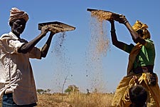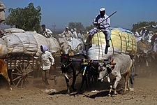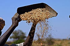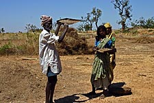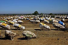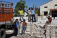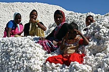 Geschafft, die Baumwolle wird zur Weiterbearbeitung getragen |