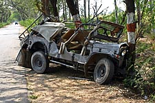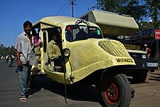 Hoffentlich wird unser Toyota hinter diesem vorsintflutlichen motorisierten Dreirad ebeso alt |
