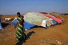 Zentralindien Pulambri. Warten auf Einlass in die Baumwollfabrik |