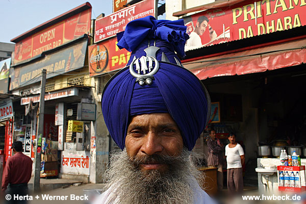 Der Turbanschmuck symbolisiert den kämpferischen Sikh