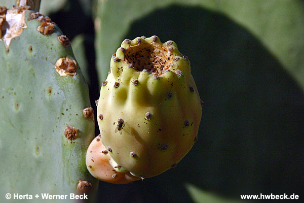 Typisch Kaktusfrucht, sie sticht noch beim Schälen