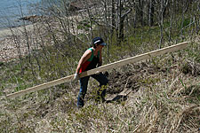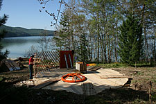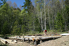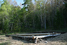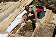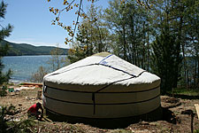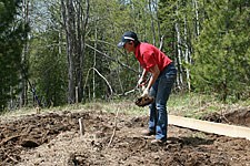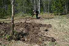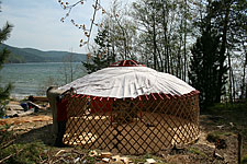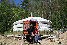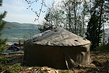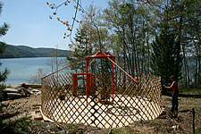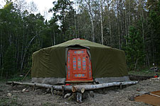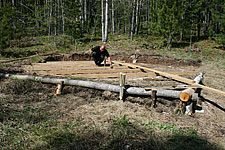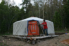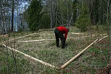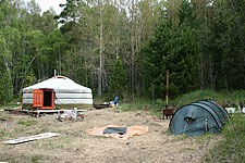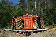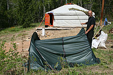 Die Jurtenfläche ebnen ist harte Knochenarbeit |