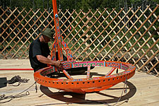 Rad aufstellen und mit 4 Dachstreben fixieren |